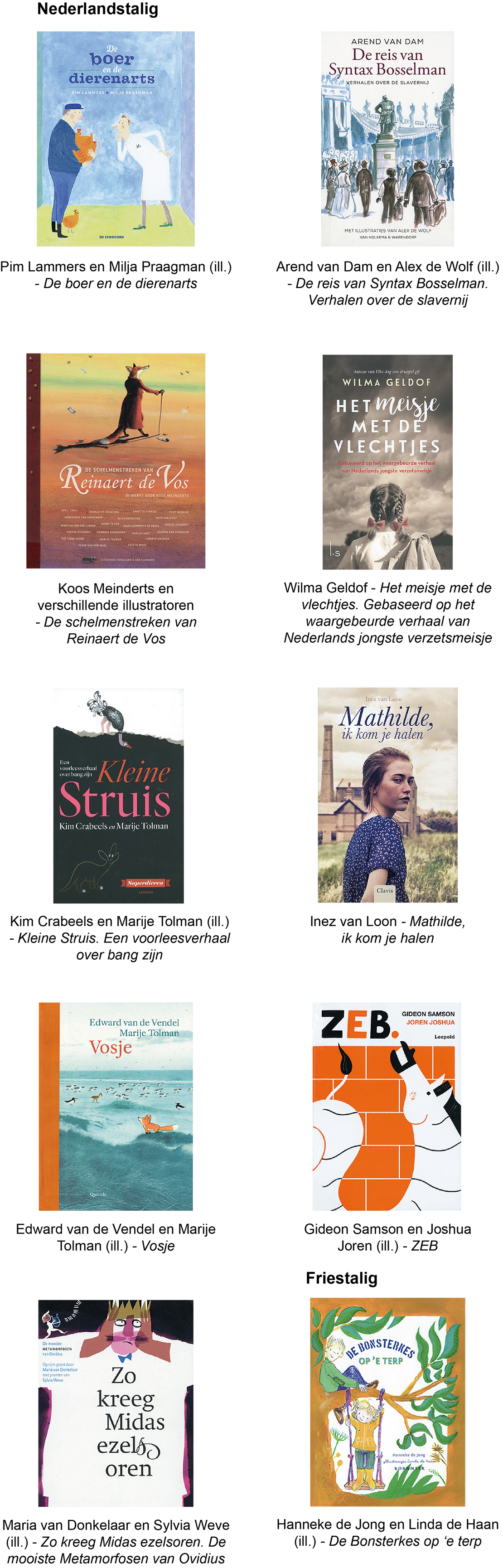 Op de Frankfurter Buchmesse zijn de White Ravens 2019 bekendgemaakt, een selectie door de Internationale Jugendbibliothek van bijzondere kinder- en jeugdboeken van over de hele wereld. In de catalogus zijn 200 titels opgenomen uit 59 landen en in 37 talen, waaronder negen boeken in het Nederlands en één Friestalig boek: